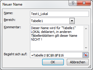 Hier wird per Namens-Manager ein "lokaler" Name definiert - erkennbar an : Bereich: Tabelle1 :